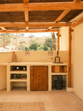 Helder Farm Studios offers four minimalist studios and the nearby old Ruin has been gently revived into two serene apartments, each designed to embrace simplicity and inspire creativity. The studios, crafted with local stone, reclaimed wood, and natural linens, feature open-plan layouts with single or double beds, private bathrooms, and terraces overlooking the orchards. Floor-to-ceiling doors flood the spaces with light, while handwoven textiles and ceramic accents add warmth. The farmhouse, the heart of the retreat, houses a shared kitchen, dining area, and lounge, where guests gather for meals or quiet moments by the fireplace. Some studios offer private outdoor showers, blending indoor comfort with the wild beauty of Alentejo.