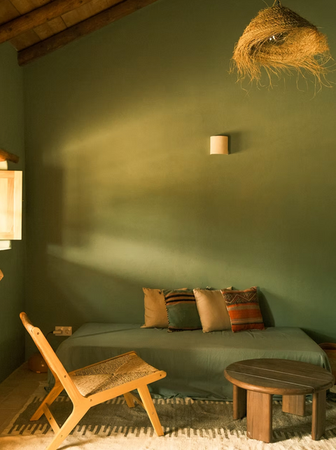 The aesthetic is deliberately uncluttered, encouraging a digital detox, Wi-Fi is available but discreet, and there are no televisions, only the sounds of nature and the flicker of candlelight at dusk. A small natural pool, fed by a spring, offers a serene spot for cooling off, its edges fringed by wild grasses. Guests describe the spaces as “timeless” and “soul-soothing,” though the minimalist design may not suit those seeking conventional luxury. For small groups or families, the farmhouse can be booked exclusively, creating a home-away-from-home for creative retreats or celebrations.